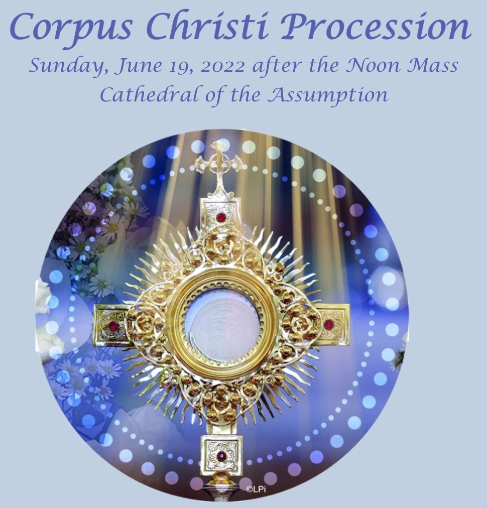 Therefore, all Catholics in the Archdiocese of Louisville have been invited to participate in this Archdiocesan procession at the Cathedral of the Assumption which begins immediately following the Sunday noon Mass. The procession will proceed through several blocks of downtown Louisville. Will be followed by a time of adoration and prayer in the Cathedral and will conclude with Benediction at 3 pm, followed by an ice cream reception.