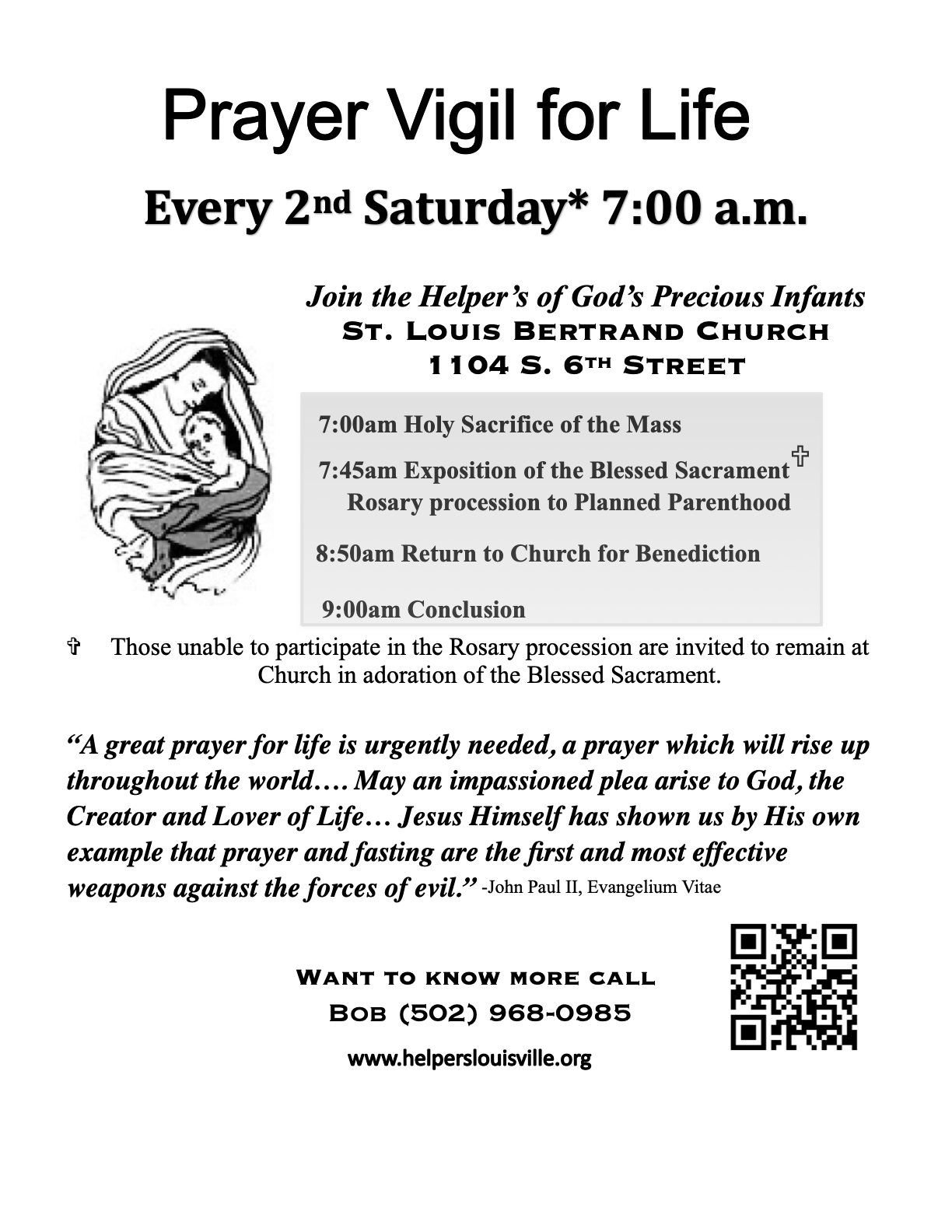 The Louisville Helpers of God's Precious Infants is a pro life group in Louisville, KY who gather for Mass at the Cathedral of the Assumption. Praying to be humble witnesses of Christ's love, especially on behalf of the unborn, their Mothers, and their Fathers.