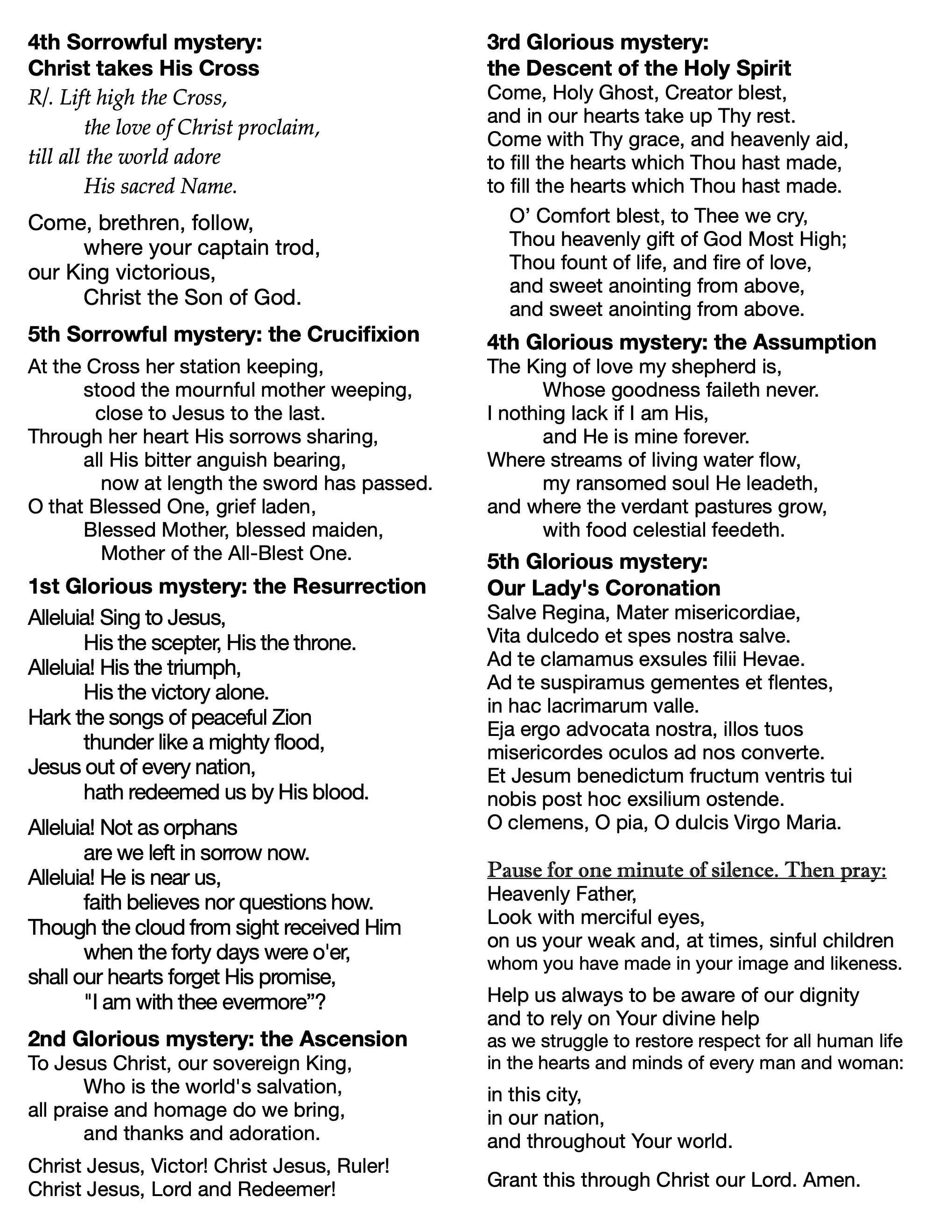 Rosary Song Sheet